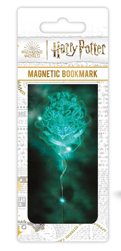 Läs din böcker i lugn och ro med en patronusbesvärjelse alltid när till hands! Magnetiskt bokmärke med motiv av en patronus i formen av Hogwartsloggan.