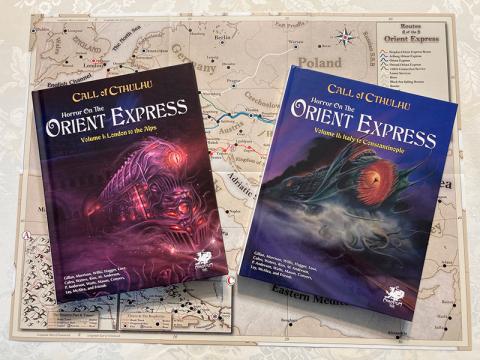 Horror on the Orient Express contains a massive and legendary campaign, of up to nineteen adventures and more than 700 pages, for Call of Cthulhu 7th Edition. Beginning in 1920`s London, the investigators journey to Paris and thence to the ancient city of Constantinople. With luck, they also return home. Two-Volume Hardcover book set includes the complete campaign & player handouts. 24 x 18 inch full color Poster Map.
