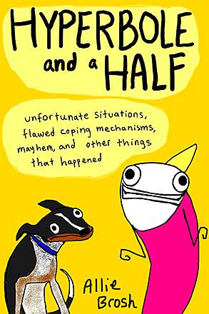 In a four-color, illustrated collection of stories and essays, Allie Brosh's debut Hyperbole and a Half chronicles the many "learning experiences" Brosh has endured as a result of her own character flaws, and the horrible experiences that other people have had to endure because she was such a terrible child. Possibly the worst child. For example, one time she ate an entire cake just to spite her mother.