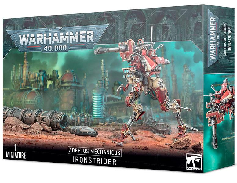 As a mobile artillery weapons platform, the Ironstrider Ballistarius can be fitted with one of two armament options: a twin-linked cognis autocannon or a twin-linked cognis lascannon. The split-toed legs can be posed in two different configurations, with suspensors that can be modelled at differing angles, and the entire surface of the machine crawls with sensors, data collection modules and antennae. The gunner has four head options; three hooded and one rebreather.