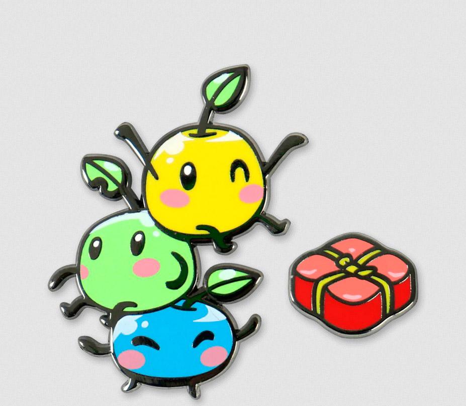 This official Stardew Valley hard-enamel pin set was designed by Kari Fry and Jorge M. Velez. Series design by Jon Kay.