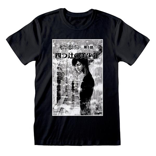 T-shirt med Junji Itos motiv från mangan Lovesickness. På t-shirtens överdel står det "kapitel 1: Den vackra pojken i korsningen"