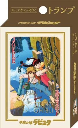 Spelkort med motiv från Studio Ghiblis film Laputa - slottet i himlen. En behållare av hårdplast att förvara korten i ingår.