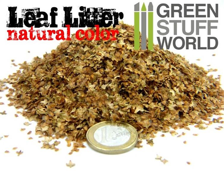 Leaf scatter material from a natural product that is almost perfect shaped like miniature leaves and ideal for 25mm (1/76) to 45mm (1/22) figures, scenery and terrain.