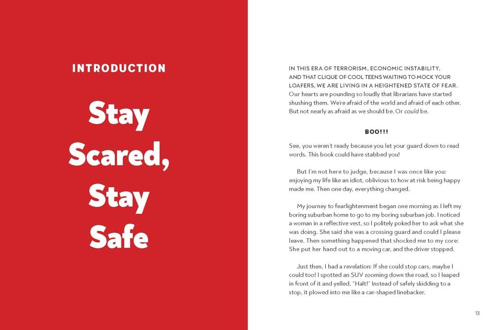 A BOOK TO KEEP YOU SAFE IN THESE ANXIOUS TIMES: Anxious and fearful about the state of the world? Friend, you are not frightened enough! Never mind the asteroid hurtling toward Earth. That bird over there? It's just waiting for the chance to swoop down and peck at your eyes. Your shoelaces? Trying to strangle your feet. From the stop signs obviously attempting to dead-end your life to that creep in the mirror who looks exactly like you, danger is everywhere. And your best survival strategyis to be afraid of everything at all times.