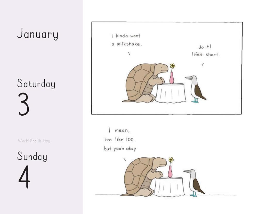 With a different illustration on each page, this day-to-day desk calendar features Liz Climo's short and sweet comics based on her quirky, funny, and almost human-like animal kingdom. Sweet, adorable, and all too relatable, this calendar captures life's everyday eccentricities with lighthearted wit, humor, and wisdom, making it an irresistible self-buy and a unique, affordable gift for fans of Liz Climo and animal lovers everywhere.