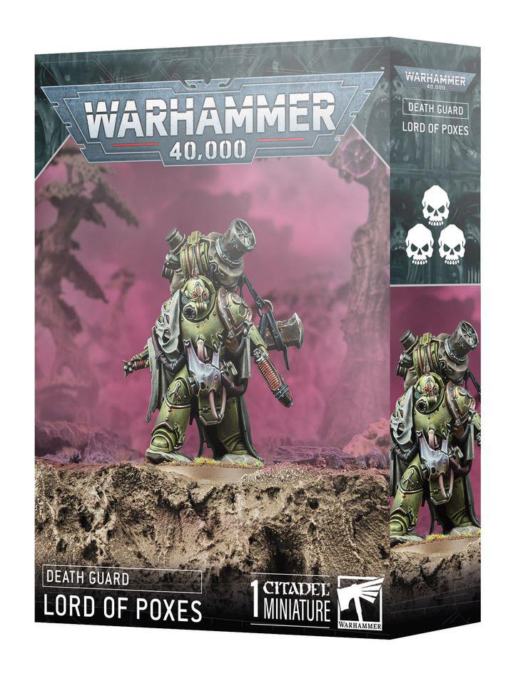 This multipart plastic kit builds one Lord of Poxes, a fog-shrouded leader for your Death Guard armies in games of Warhammer 40,000. This hulking warrior is a fitting general, firing off shots with his plasma pistol before charging in with a massive, slab-like great plague blade – excellent weapons for taking down the hated Space Marines. The Lord of Poxes is ideal for wading into the thickest fighting at the head of your Plague Marines' advance.
