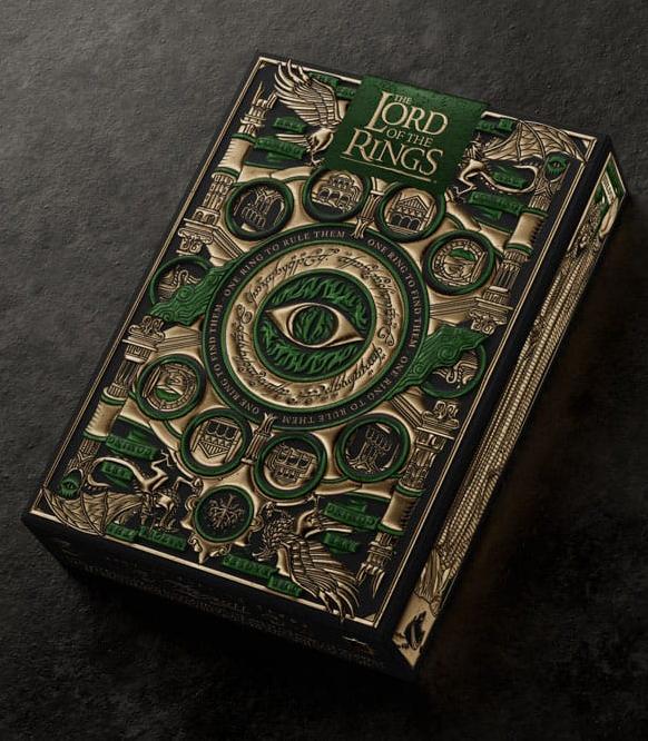 Spelkort med Sagan om Ringen-karaktärer. Kortens framsida föreställer karaktärerna från filmerna och baksidan har ett snyggt guldigt mönster.