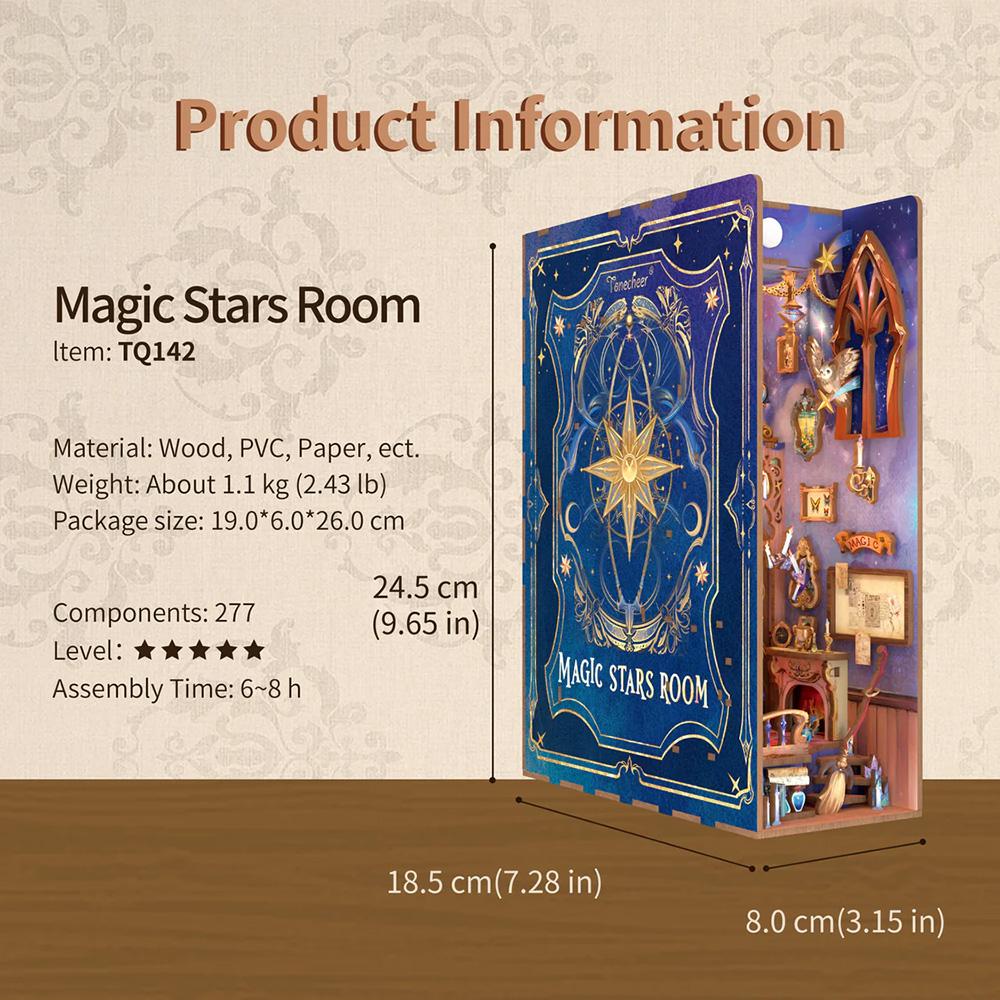 Bygg ihop din alldeles egna lilla book nook att sätta i bokhyllan! Ett diorama över ett magirum som kan lysas upp med inbyggda batteridrivna små lampor.