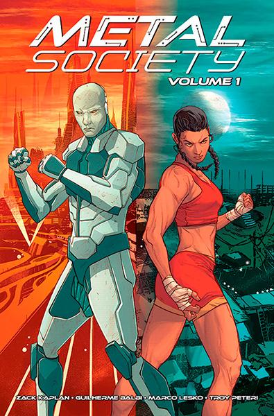 PORT OF EARTH writer ZACK KAPLAN teams up with hot artist newcomer GUILHERME BALBI in a new dramatic sci-fi MINISERIES, BLADE RUNNER meets ROCKY. In an inverted future, evolved robots have resurrected humans for manual labor, but when a tribalistic cultural clash breaks out, a fearless human fighter and a frustrated, displaced robot will square off in a public MMA-style sport fight of epic stakes to finally prove which is supreme: man or machine?