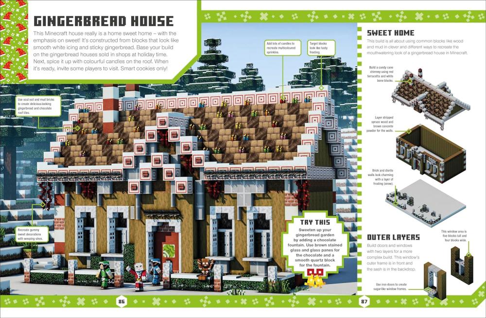 Packed with inspirational ideas and tips for Minecraft holiday builds, Minecraft Festive Ideas is perfect for creative Minecraft fans who want to build a fun and festive winter wonderland.