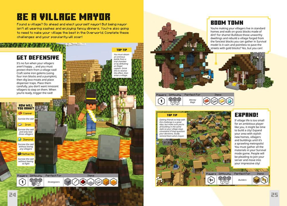 An official Minecraft illustrated guide with over 30 exciting new ways to play and build in the game for 2025. Perfect for beginners, children and all gaming fans! Can you take on over 30 new challenges and survive?