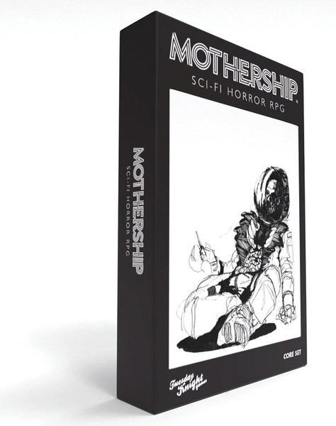 Everything you need to play in one horrifying box. It's complete with all the 1e (First Edition) core rulebooks, an introductory module, and a set of dice. When we first started designing Mothership, this was the set we envisioned.
