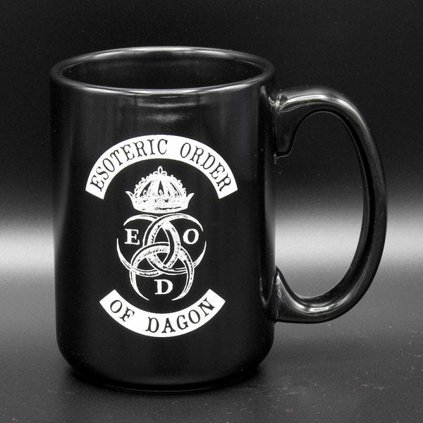 Stor svart porslinsmugg med den esoteriska Dagon-ordens märke. Avnjut din varma dryck i sann lovecraftiansk anda! Muggen är cirka 12cm hög och 8cm i diameter.
