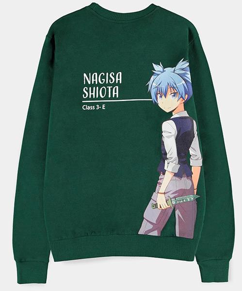 Långärmad tröja med ett litet tryck från Assassination Classroom på framsidan och ett stort tryck av Nagisa Shiota på ryggen. 60% bomull, 40% polyester.