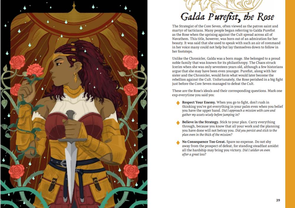 The handbook contains all the rules to play the game including the 7 Agent playbooks, the 5 Chaos Source Playbooks, The Movesets, a d100 table of threads for further interesting play, an intuitive advancement system, 5 stunning fully illustrated maps, more world lore, and a comprehensive guide to GMing for Navathem.
