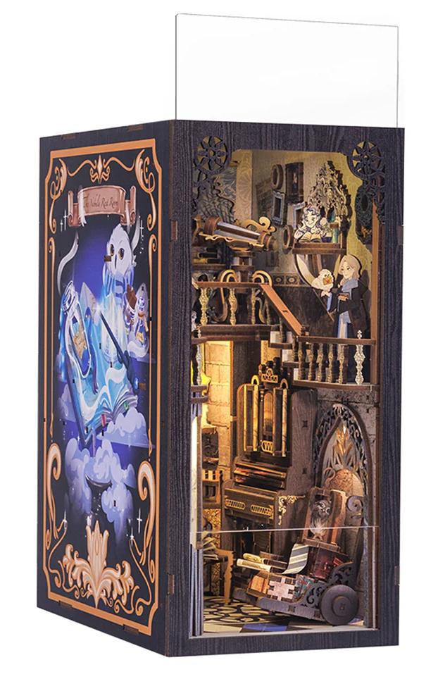 Bygg ihop din alldeles egna lilla book nook att sätta i bokhyllan! Ett diorama över ett elevhem för elever som gillar astronomi. Kan lysas upp med inbyggda batteridrivna små lampor.