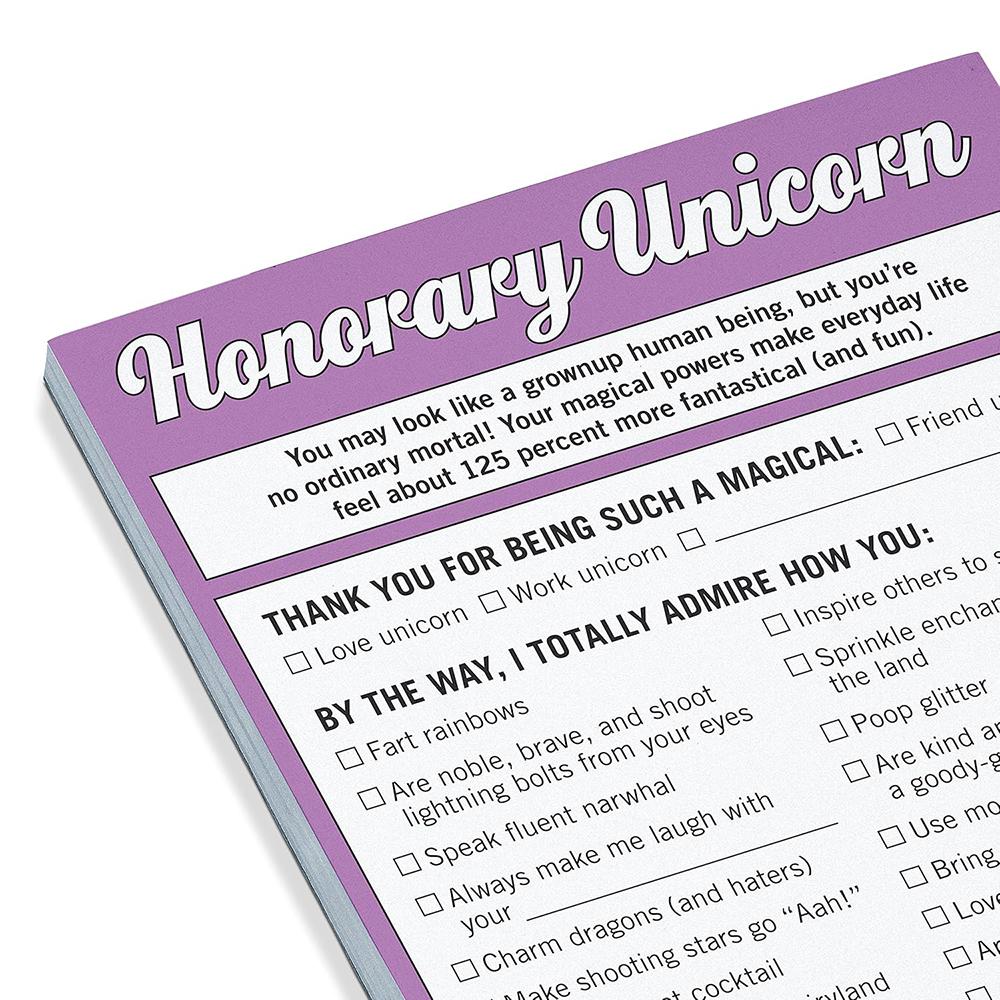 Let's give it up for those extra-special people who bring a dash of whimsy and sparkle to the daily grind. Use this pad to salute the magical creatures in your life, whether they're friends, family, coworkers, or baristas. All hail the golden horn!