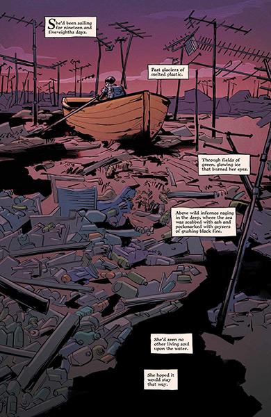 In this decades spanning post-apocalyptic tale, Maceo and Mezzy have never met anyone like each other, and they’ll need all the help they can get to survive a planet ravaged by environmental catastrophe. “Love in the Wasteland” kicks off the first arc of this epic trilogy that spans a lifetime as the dark mysteries of a ruined world and their own stark differences tear at the threads holding Mezzy and Maceo together. As they endure the horrors of plastic tornadoes and frozen sludge, Maceo proves to be more than just a burden, and they make an unlikely connection. But to their peril… they might not be as alone as they thought…