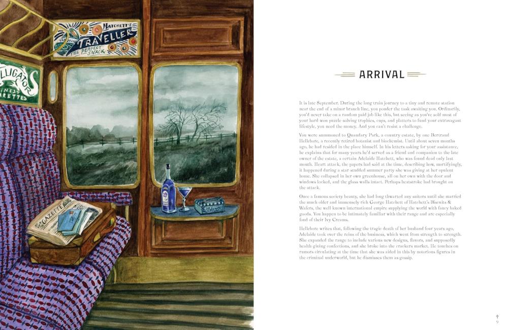 When the beautiful socialite and heiress of Hatchett’s Biscuits & Wafers is found dead at her annual summer soirée, you find yourself at the scene of the crime: the mysterious Quandary Park, a country manor full of riddles, hidden doors, and secrets. Thanks to your puzzle-solving prowess, you’ve been hired to investigate the events surrounding the death of Adelaide Hatchett and her quirky cast of party-guests-turned-suspects, including the high-spending scoundrel Cyril Blight, the infamous tattoo artist Tatiana Outlawe, and Bertrand Hellebore, the retired botanist who is convinced Adelaide’s last will and testament was forged.