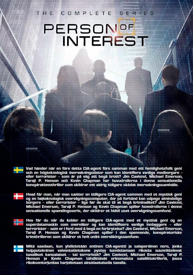 Alla fem säsongerna av serien som börjar med att teknikgeniet Harold Finch (Michael Emerson) och den före detta CIA-agenten John Reese (Jim Caviezel) slår ihop sig med den kallblodiga Sameen Shaw (Sarah Shahi) för att rädda liv och söka rättvisa, medan New York-poliserna Joss Carter (Taraji P. Henson) och Lionel Fusco (Kevin Chapman) äntligen nystar upp den kriminella poliskonspirationen "HR" - men till ett högt pris.
