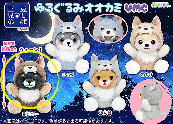 Hänge med minimjukis i form av hund i stäppvargsdräkt. Här en svart hund i brun kostym.