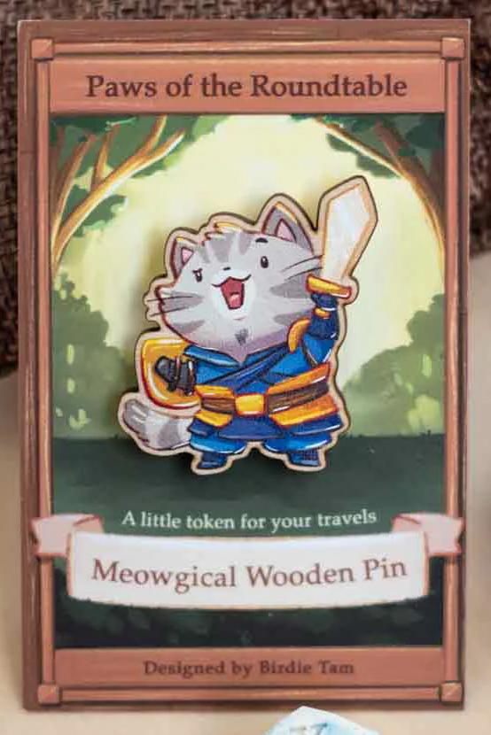 Märkesnål i trä av kattkrigare.