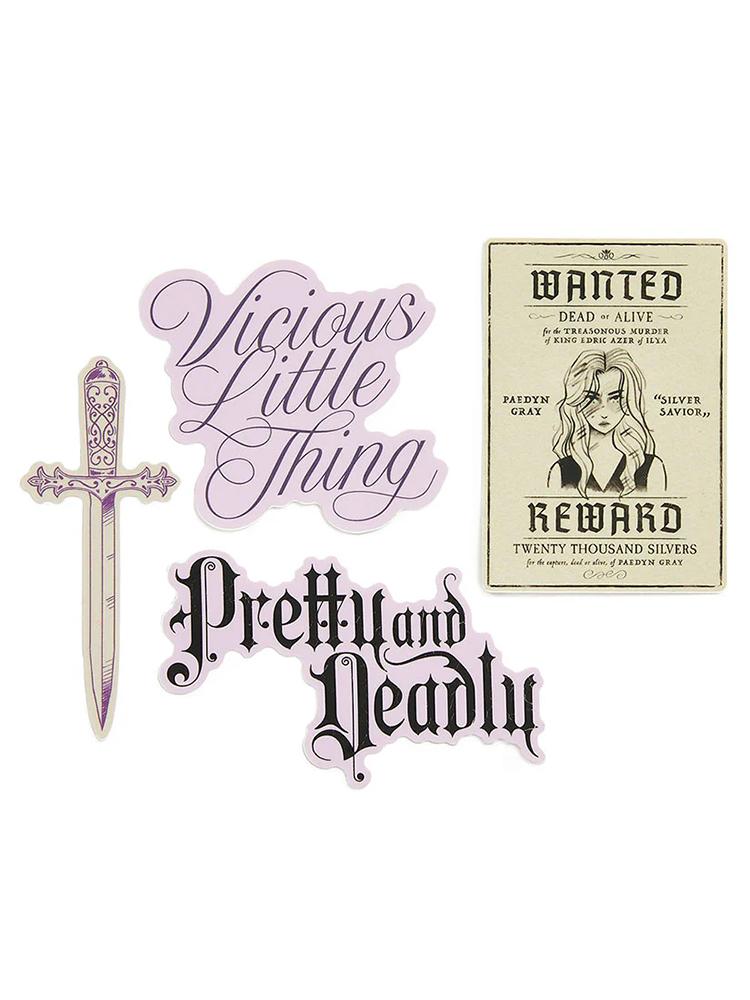 Display your love for bestselling fantasy series Powerless proudly with this exclusive sticker set! Featuring four unique designs, these stickers are the perfect companion for any fan on their journey through the Kingdom of Ilya.