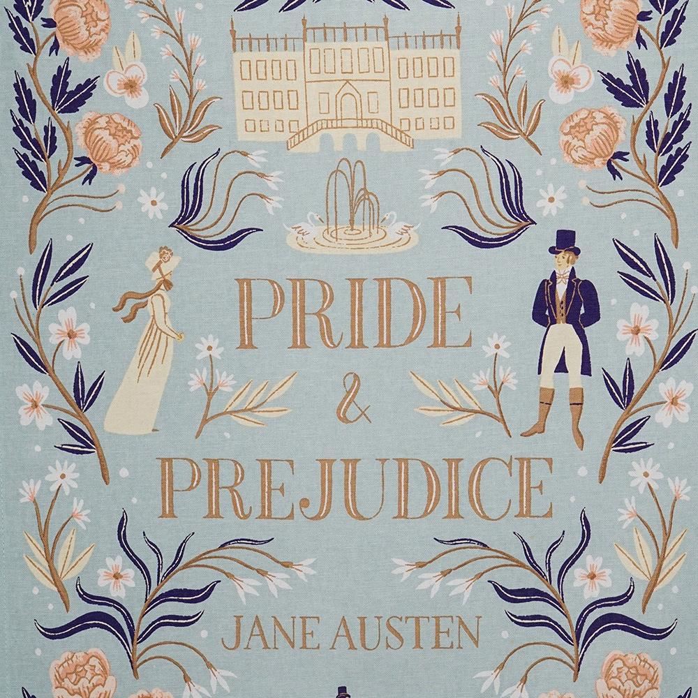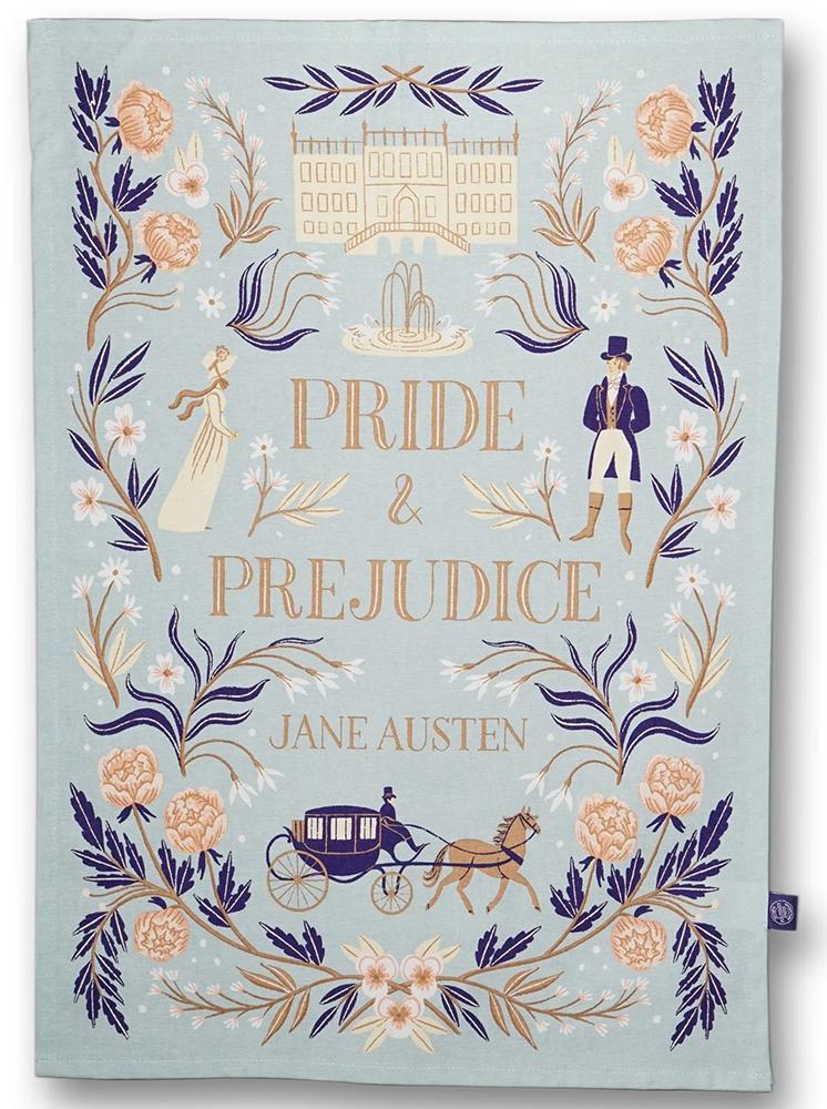 Nätt handduk med Jane Austen-motiv för exempelvis fikastunder.