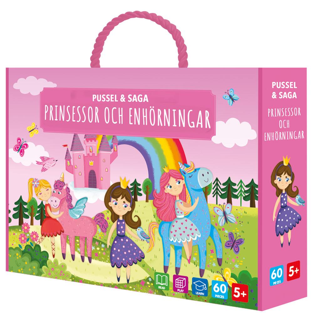 Följ med på en magisk resa med prinsessor och enhörningar och skapa en mysig stund tillsammans med både pussel och bok!