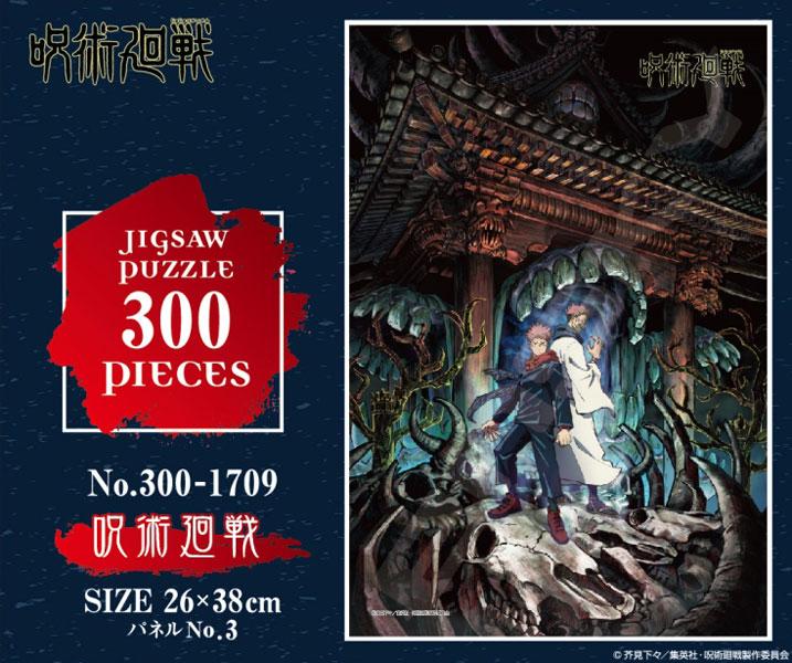 Fint pussel med motiv från Jujutsu Kaisen. Itadori Juuji och Ryomen Sukuna befinner sig i Sukunas domän, omgivna av djurskelett framför en demoniskt spöklik tempelbyggnad.