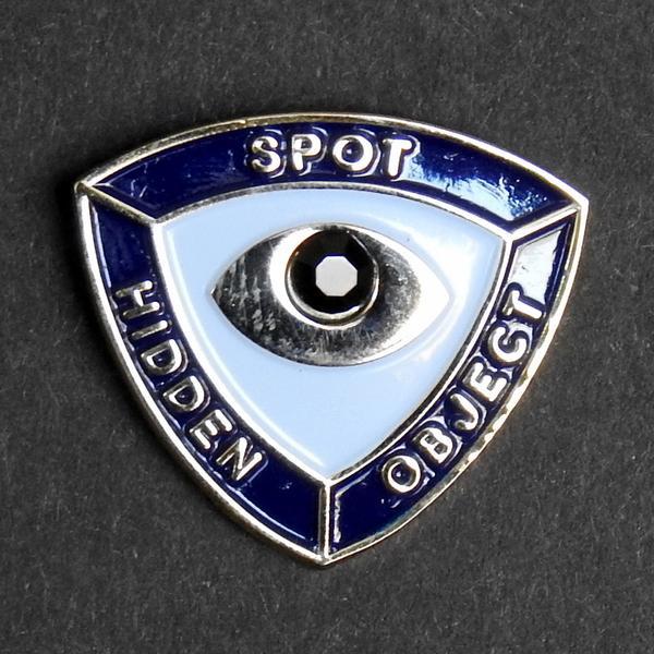 Spot Hidden Object - there are those who can enter a room and see what others miss. Dark blue and light blue enamel with all-seeing gemstone eye motif on polished gold.