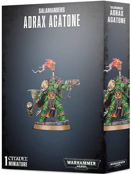 Adrax Agatone is the anvil against which the enemies of the Salamanders break. Where he holds the line, the Salamanders fight with unstoppable determination. Agatone's Arridian drakehide cloak protects him from all but the most potent weaponry, while he immolates them with Drakkis - his masterwork hand flamer - and delivers thunderous blows with his thunder hammer, Malleus Noctum.