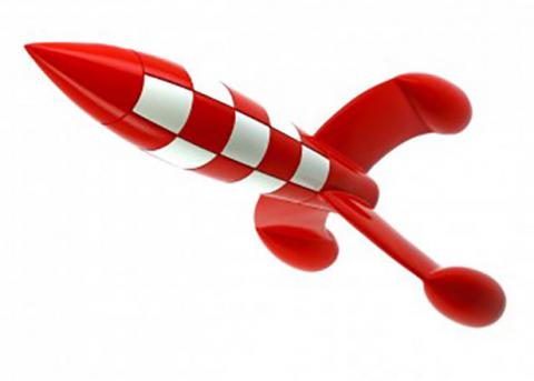 Hergés stora nyfikenhet för vetenskap visar sig tydligt i Tintin månäventyr. Den rödvitrutiga månraketen har blivit en ikonisk symbol inte bara för Hergés verk men för seriekonsten som sådan. Denna nya 30 centimeters resinmodell av Tintins raket (2016 års utgåva) baseras på en skiss från Månen tur och retur. Varje samlarraket förpackas i en snygg låda och kommer med ett certifikat.