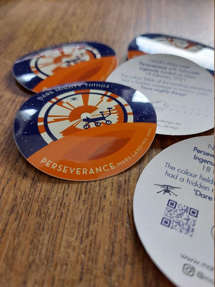 NASA's Mars rover Perseverance landed on the Red Planet 18 February 2021. With it it carried Ingenuity, the first helicopter to visit another planet. The landing parachute became famous for it's hidden message compsed in binary code using the colour fields of the fabric, conveying the message "Dare mighty things."It's the JPL (NASA Jet Propulsion Laboratory) motto, taken from a Theodore Roosevelt speech.