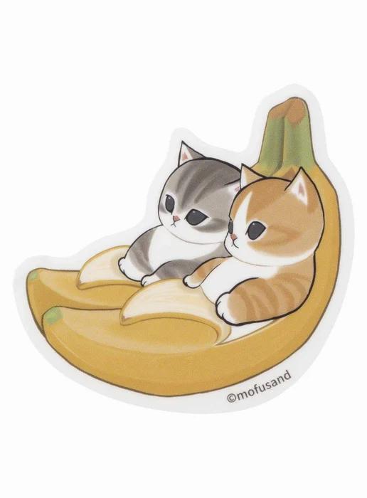 Klistermärke föreställande ett par katter som seglar i bananbåt.