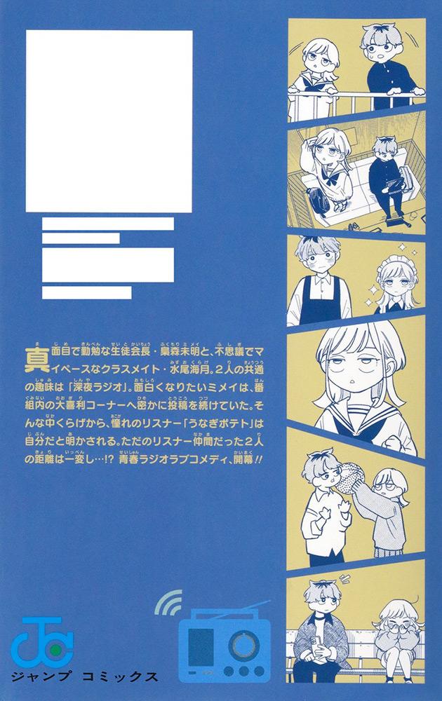This story is about the serious and diligent student council president Miaki Owmori, and his mysterious and self-paced classmate, Kaigetsu Mizuo. The two share a common hobby of "late-night radio". Mimei, who wants to be funny, secretly posts to the Okiri corner of the program. In the midst of this comes a revelation about the true identity of the listener "Eel Potato". As fellow listeners the two starts to connect on a personal level too. Youth radio love comedy.