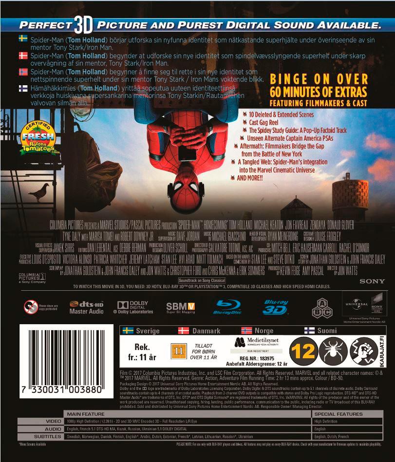 - Blu-ray 3D och blu-ray region B/2. Svensk utgåva.