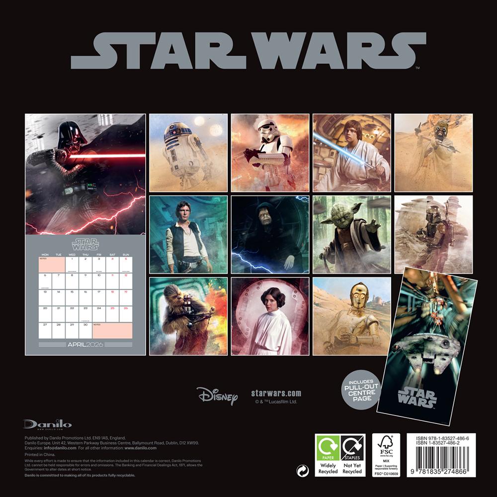 Immerse yourself in the epic universe of Star Wars with the official Star Wars Classic 2026 square calendar! Featuring classic characters from the original trilogy, this calendar is perfect for any devoted fan. This calendar is a must-have to celebrate your passion for the galaxy far, far away while keeping track of all your important dates. This calendar is plastic free.