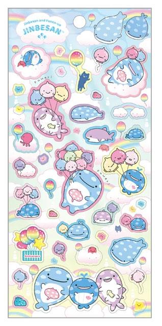 Jinbesans glada havsdjur, däribland valar och hajar, med fina ballonger - som klistermärken.