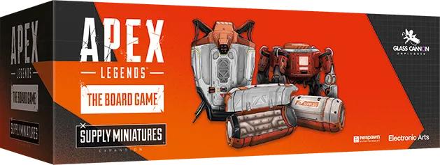 The Supply Miniatures Expansion includes a set of highly detailed plastic 3D game pieces for Apex Legends: The Board Game (40 mm in scale), containing miniatures for Supply Bins, Supply Drops, and Respawn Beacons that are sure to add a deluxe look to all of your setups!
