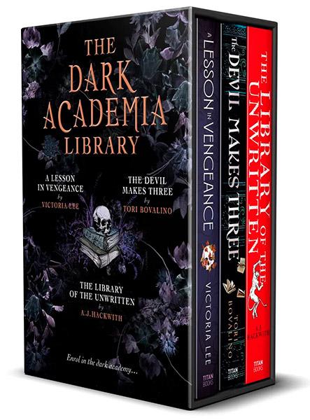 A collection of three gruesome tales for fans of Dark Academia. This box set includes A Lesson in Vengeance by Victoria Lee, The Library of the Unwritten by A. J. Hackwith, and The Devil Makes Three by Tori Bovalino.