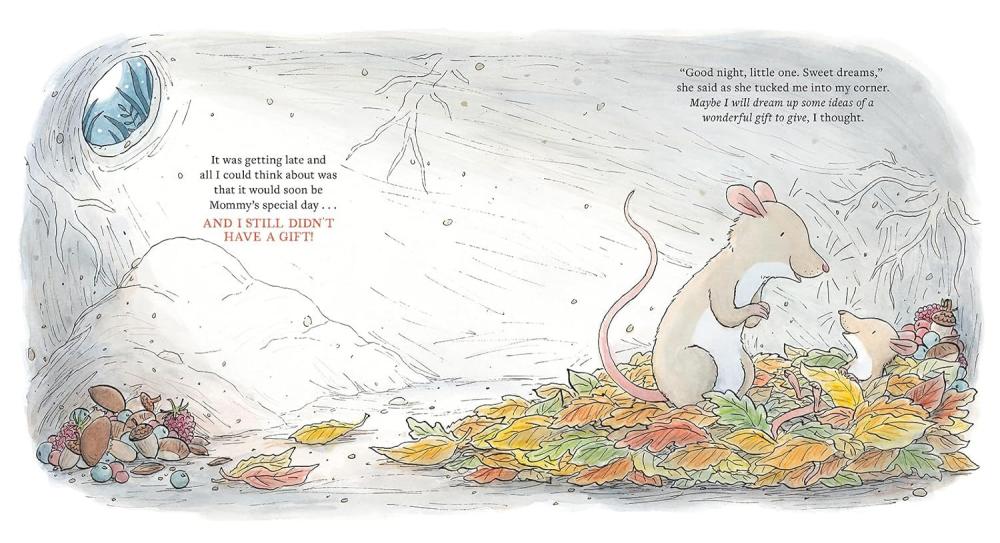 A little mouse searches and searches the forest for the most wonderful gift for his mother. What can he give his mother to show her how much he loves her? Perhaps a pine cone full of pine nuts? Or a beautiful flower? Or an eye-catching feather? But when the day of the birthday arrives, nothing turns out as he expects. . . . How will the little mouse show his love?