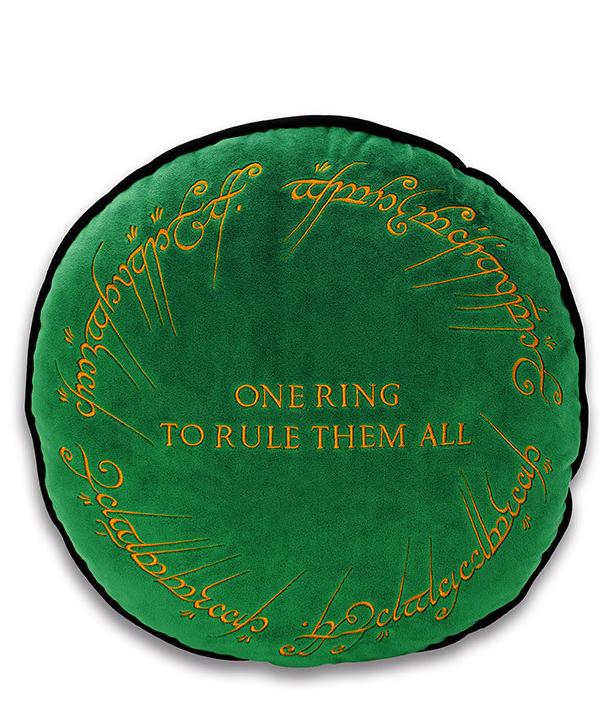 Rund kunde med motiv av texten från Den enda ringen från Sagan om ringen.