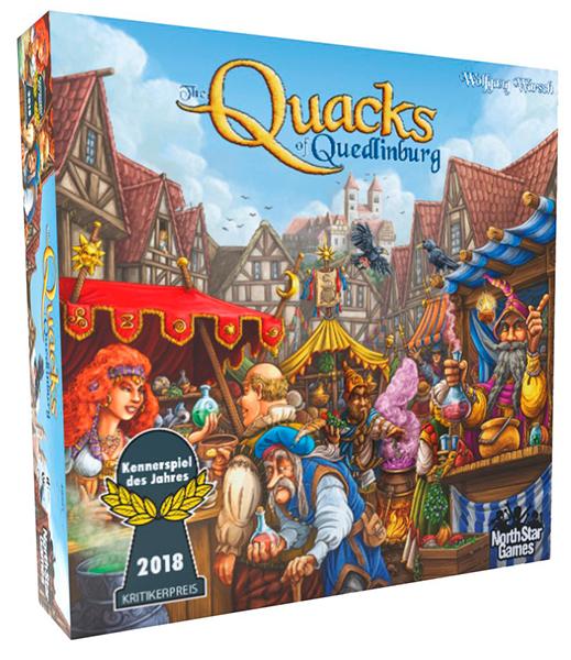 In Die Quacksalber von Quedlinburg, each of the player charlatans ("Quacksalber" in German) makes their own secret brew, drawing ingredients from the shared supply bag to do this. Take care with what you draw, though, for a pinch too many peas will spoil the whole mixture. If you stop in time to cook only the small portion you have, maybe you can then use the income you earn from selling this creation to buy more valuable ingredients in the future, making your next potion even better to bring in many points.