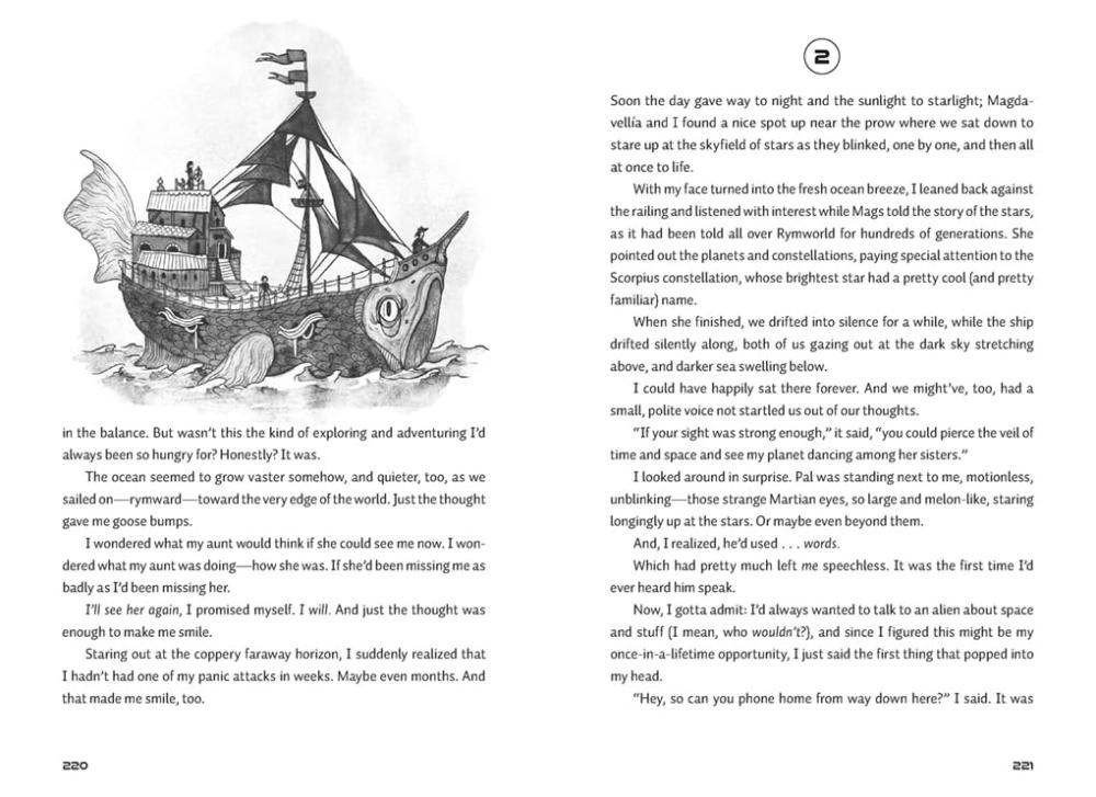 Antares and Magdavellía must set out beyond the edges of any map to discover the undiscoverable: a lost and forgotten island where there is rumored to exist a legendary artifact: a mythical compass that just might hold the key to foiling the mystics’ plans. Following a series of intricately concealed clues left behind by Magdavellía’s parents (clues Antares seems to be the key to unlocking), they must wield both geometry and alchemy, outsmart molemen and mermaids, and outrun fiendish outer space aliens?all while attempting to solve a riddle as old and mystifying as the sun.