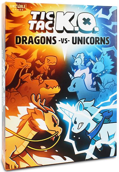 Tic Tac K.O. is a quick-to-learn card game that puts a diabolical twist on Tic Tac Toe, letting you smack your opponents to the side as you claim squares in your quest for victory. These adorable ruthless Dragons and Unicorns won't hesitate to destroy their opponents with fire, lightning, or a swift kick in the patoot.