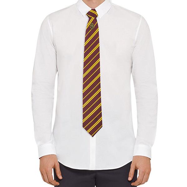 This 100% micro fibre Necktie from the Harry Potter movies measures 145 x 8 x 3,5 cm and features a printed Gryffindor patch. Comes with a metal pin in a window box packaging.