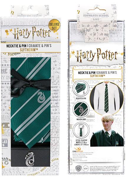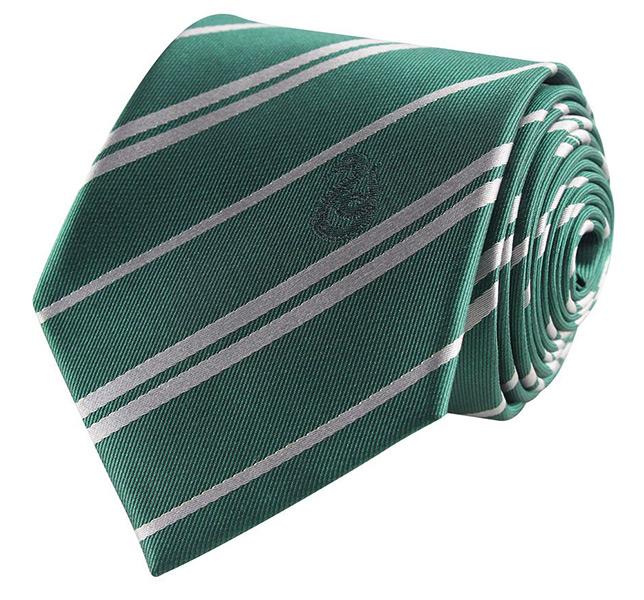 This 100% micro fibra Necktie from the Harry Potter movies measures 145 x 8 x 3,5 cm and features a printed Slytherin patch. Comes with a metal pin in a window box packaging.