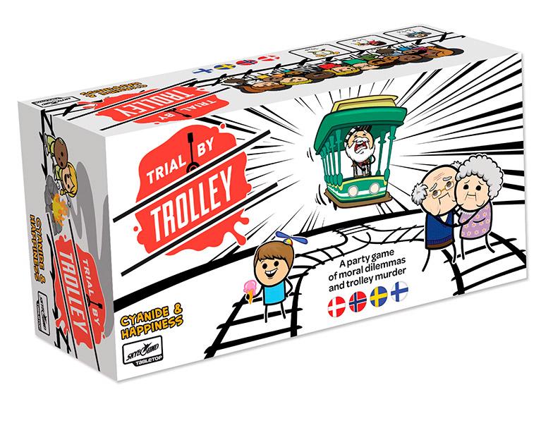 From the creators of Cyanide & Happiness comes a card game of tough decision. In Trial by Trolley, one player acts as the Trolley Operator and must choose where to send a murderous, out of control, trolley. Every other player at the table plays cards and argues in order to convince the operator to spare their lives and condemn everyone on the other track to a gruesome death-by-trolley.
